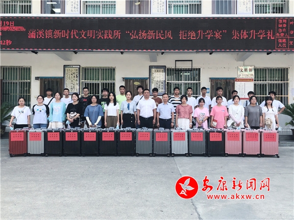 本网讯(通讯员 汪东乔)金秋八月,硕果飘香,又是一年金榜题名时。为倡导文明新风,巩固移风易俗成果,8月19日,汉阴县蒲溪镇新时代文明实践所开展了“弘扬新民风 拒绝升学宴”集体升学礼活动。镇领导、部分学生和家长代表齐聚一堂,共同见证学子们人生的重要时刻。
