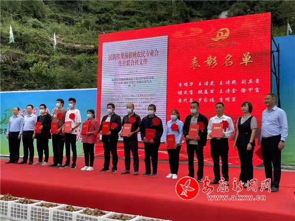 本网讯(记者 吴苏 通讯员 张琪琪)相约五美观音河,共品生态猕猴桃。初秋,正是猕猴桃的成熟季,产业园里硕果累累、果香四溢。9月8日,以“汉阴猕猴桃 首选观音河”为主题的汉阴县观音河镇第二届猕猴桃采摘活动在义兴村成功举办。开幕式上还与部分农户和相关帮扶单位签订了猕猴桃产业园反租倒包协议和消费帮扶协议,并对产业大户进行了表彰。