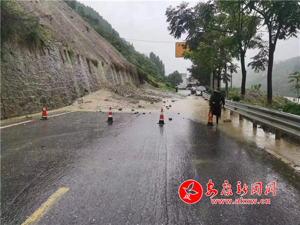 受暴雨影响,汉阴以下道路出现山体滑坡已交通管制
