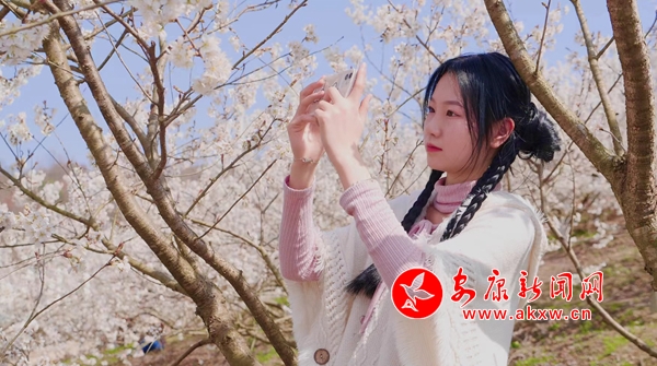 “期待了很久,终于等到李家沟樱桃花盛开,这里漫山遍野,花开如雪,真的太美了,我们拍了不少好看的照片,真的是不枉此行。”正在用手机记录这美好春光的游客王女士激动地说。