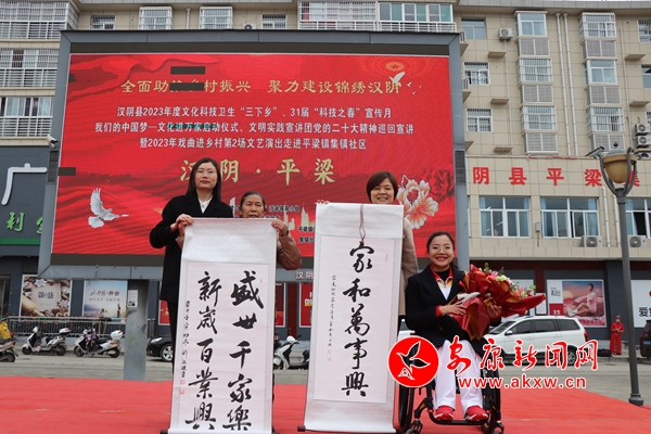 活动现场,集镇社区新时代文明实践广场人头攒动,文化、科技、卫生战线的工作者,为广大群众现场提供文艺演出、科普宣传、义诊等服务。四周的咨询服务点上,工作人员热情地为群众答疑解惑,普及农业科技、教育问题、法律维权、医疗保健等知识。县书法家协会挥毫泼墨,为平梁镇蔡家河村“好媳妇”夏江波、清河村“好婆婆”刘冬兰送上暖暖的祝福。随后的文艺汇演中,地方戏剧、小品、舞蹈等节目轮番上演,为广大群众献上了一场精彩的文化盛宴,赢得了百姓的一致好评。