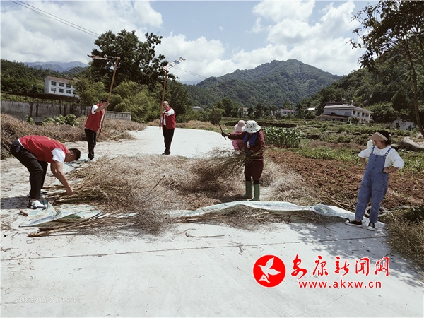 在汉阴县城关镇三元村七组村民吴发金家的油菜田里,他将成熟的油菜铺在垫子上,家人用手中奋力扬起的连枷,一下下错落地砸在铺好的油菜上,伴随着哗哗声响,油菜籽纷纷从油菜荚中脱落而下,三人分工协作地忙碌着。但身后还剩下一多半油菜“躺在”田里,直到见到抢收“突击队员”的到来,才露出了如释重负般的笑容。“感谢你们来给我帮忙,今天不乘着大太阳,把油菜收完,明天开始又是几天连阴雨,我这点油菜籽怕都要生芽子了,就糟蹋啦!”吴发金一边忙着手里的活,一边咧着嘴对前来帮忙的“突击队员”连声感谢到。