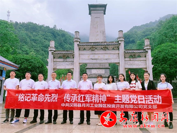 本网讯(通讯员 文霞 陈紫薇) 为庆祝建党102周年,铭记革命先烈遗志,传承红军革命精神, 6月16日,汉阴县月河工业园区投资开发有限公司全体党员职工赴旬阳红军镇开展"铭记革命先烈,传承红军精神"主题党日活动,进一步增强党员干部理想信念,鼓足干事创业热情。