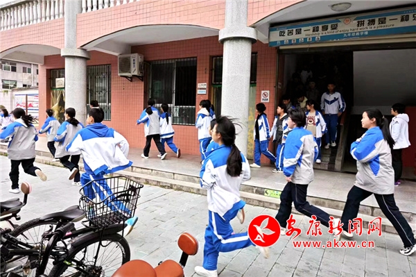 上午8时15分,随着校园广播发出的“警报声”,全校教师及工作人员迅速到达指定岗位,40个教学班3000余名师生立即抱头、捂鼻、蹲下就地避险。随即,各班随堂老师沉着冷静,迅速指挥学生有序撤离教室,学生们紧张而不慌乱,听从指挥,按规定线路、要求、有秩序地迅速疏散到安全聚集地。