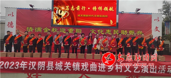 本网讯(通讯员 张辉)10月20日,汉阴县城关镇“情满金秋迎重阳、文化惠民助振兴”文艺会演暨2023年精神文明先进典型表彰大会在三元村文化广场隆重举行,200余名干部群众欢聚一堂,共同分享精神文明建设及乡村振兴优秀戏曲文化盛宴。