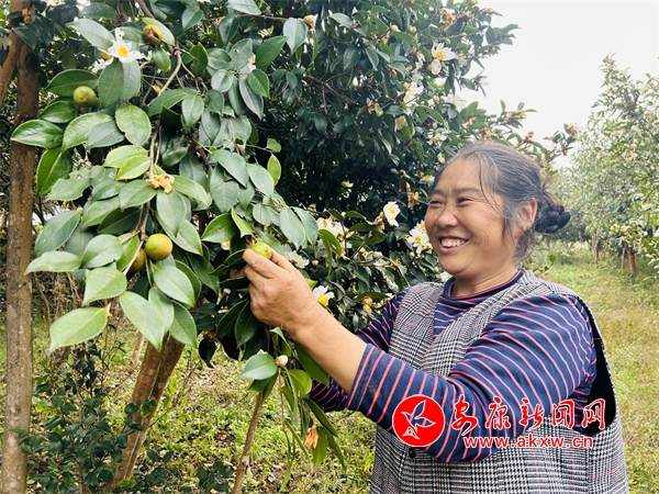“今年在这个园子里从正月份干到现在,大概有30000多块钱工资。这两天在茶园里捡茶果150元一天,再过几天园子里还割草,活还很多,活还好做、轻松。”村民余祖录朴爽朗的笑声和自豪的夸赞声给这个静谧的村子孕育了无限生机。阳光仍盛,他手中的活儿还未停歇,天高云淡风轻,抬眼可望的胜雪油茶花勾勒出了一幅美好的山乡“丰”景图。