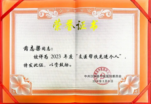 努力终会有回报,由于他的杰出表现和无私奉献,芮志梁多次获奖,但他仍旧勤勉认真,时刻把患者放在首位。在支医帮扶期间,他获得了汉阴县“支医帮扶先进个人”等称号。然而,在他看来,这些荣誉并不重要,重要的是能够为基层医疗事业贡献自己的力量,为更多的患者带去健康和希望。帮扶之路虽然艰辛,但芮志梁却从未退缩。他始终坚守初心、牢记使命,用自己的实际行动诠释着医者仁心的真谛,用自己的辛勤努力和无私奉献,为汉阴县中医医院带来了翻天覆地的变化。