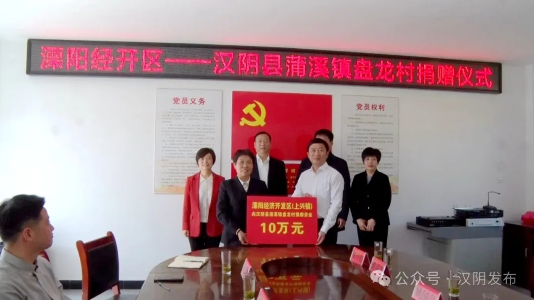 随后,夏国中一行前往汉阴县优鲜到家农业科技有限公司进行座谈。会上,该公司负责人就企业运营模式、发展状况、企业发展存在的问题等情况作了汇报。溧、汉双方肯定了该公司在苏陕协作中的突出贡献,同时还就农旅融合、产业发展、人才交流等工作进行沟通交流,希望通过农产品批发市场、商贸流通企业等渠道,发挥线上交易、直播带货作用,持续推动“陕货进苏,苏货入陕”。会后,溧阳经开区、溧阳市残联分别向蒲溪镇盘龙村、汉阴县扶残助残资金各捐赠10万元。