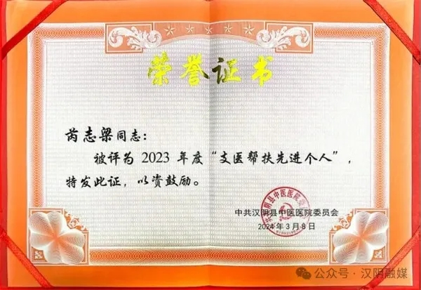努力终会有回报,由于他的杰出表现和无私奉献,芮志梁多次获奖,但他仍旧勤勉认真,时刻把患者放在首位。在支医帮扶期间,他获得了汉阴县“支医帮扶先进个人”等称号。然而,在他看来,这些荣誉并不重要,重要的是能够为基层医疗事业贡献自己的力量,为更多的患者带去健康和希望。帮扶之路虽然艰辛,但芮志梁却从未退缩。他始终坚守初心、牢记使命,用自己的实际行动诠释着医者仁心的真谛,用自己的辛勤努力和无私奉献,为汉阴县中医医院带来了翻天覆地的变化。