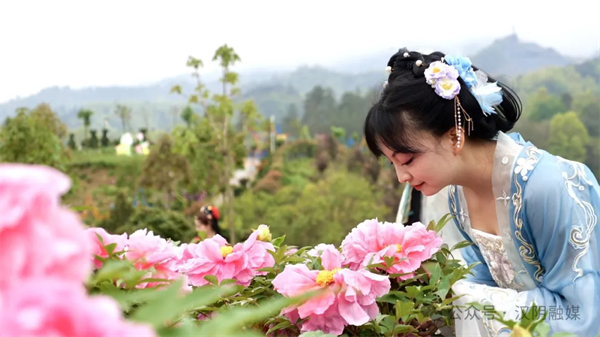 走进牡丹园内,可以看见一朵朵姹紫嫣红、一株株玉笑珠香、一丛丛富丽堂皇的牡丹花,展现了“群芳尽怯千般态”的美景,吸引众多游客前来赏花、拍照。一群身着华丽汉服的“花仙子”在园内巡游,她们头戴簪花,衣袂飘飘,仿佛从画中走出,与现场观众共同欣赏这春日的美景。不仅为活动增添了浓厚的文化氛围,更让游客们仿佛穿越到了古代的游园盛会,亲身体验那份古朴与雅致。