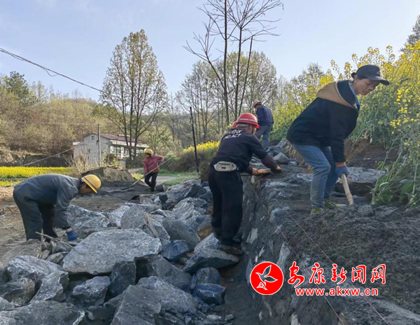 本网讯(通讯员 吕亨未)近日,在汉阴县城关镇平安村以工代赈项目施工现场看到,群众正在抬石砌坎,一派繁忙施工景象。