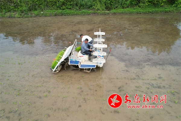 当前也正值水稻插秧的关键时期。5月31日,在平梁镇兴汉农机合作社的稻田里,插秧机操作员正在进行水稻机械化插秧作业,相比于传统的人工插秧,机械化插秧不仅大大提高了作业效率,还能更精准地控制秧苗的深度、间距和行距,有利于水稻生长和提高产量,实现农业节本增效。