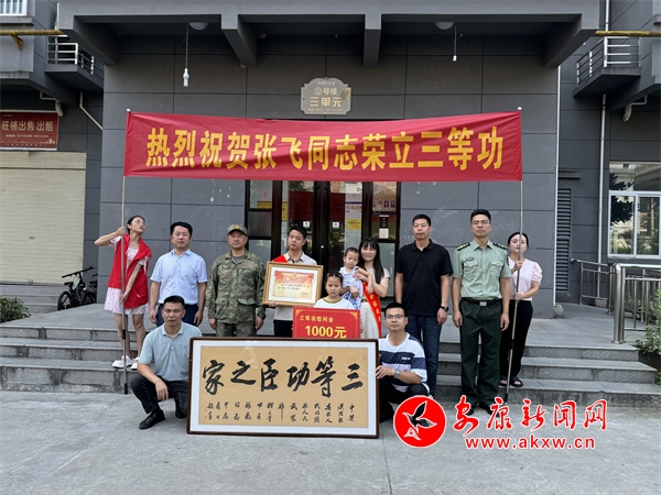 本网讯(通讯员 张辉)8月1日,八一建军节当天,汉阴县城关镇联合县人民武装部、县退役军人事务局为辖区4名荣立“三等功”的现役军人送上立功喜报和慰问金,把党和政府的关心关爱送到军人军属心坎上。