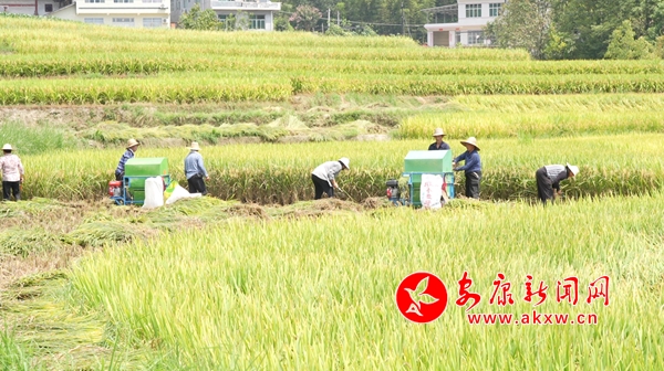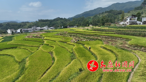 金秋时节,刚刚入选世界灌溉工程遗产的汉阴凤堰梯田进入了一年中稻谷成熟的季节,耀眼的金黄扑入眼底,展示着悠久而迷人的秦巴山区梯田风貌。金黄的稻谷随风摇曳,村民们趁着晴好天气,按下水稻抢收快进键,确保颗粒归仓。