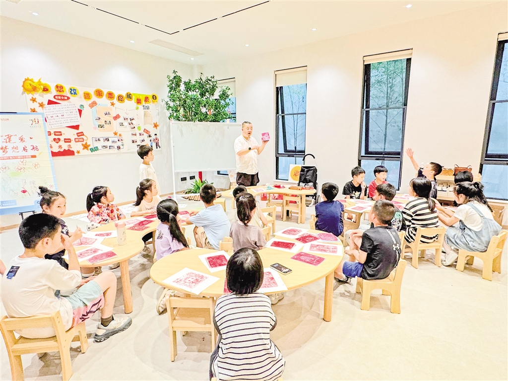 非遗老师正在为孩子们上非遗版画课。贺珍珍 熊乐 摄