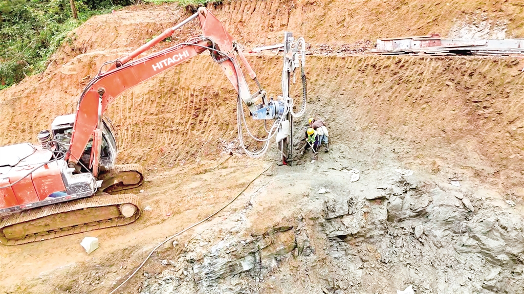 在凤凰山隧道引线工程(进口段)项目建设现场,机器轰鸣,挖掘机挥舞着铲斗挖掘土石,运输车辆往来穿梭,配合默契。工人们铆足干劲,争分夺秒抢抓工期,现场一派热火朝天的施工景象。