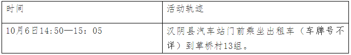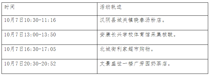 根据流调情况,现将外市核酸检测阳性病例涉及密切接触者在汉阴县的公共场所活动轨迹公布如下: