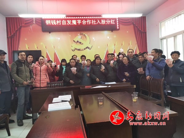汉阴县铁佛寺镇铜钱村为35户贫困户分红1.36万元
