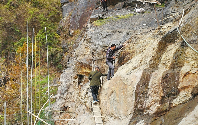 安康惊现“天路” 悬崖上架着不足30厘米宽木板