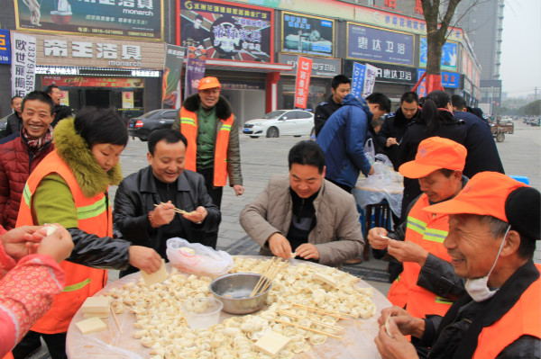 情暖冬至:汉阴干部为环卫工包饺子