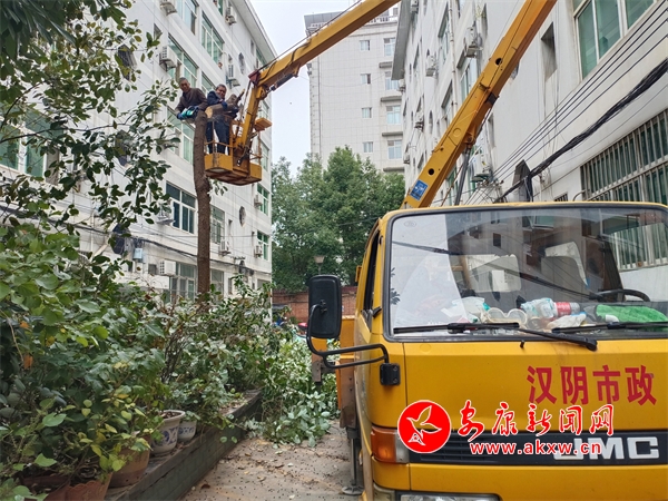 汉阴县长乐社区:修剪树枝除隐患 为民解忧办实事