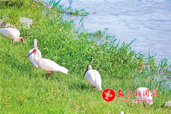 “现在这河坝边上的朱鹮越来越多了,以前就能看到几只,现在经常能看到一大群,一二十只在河坝边上找食吃,它们也不怕人,我们有时候在河坝边上种庄稼,逛的时候……