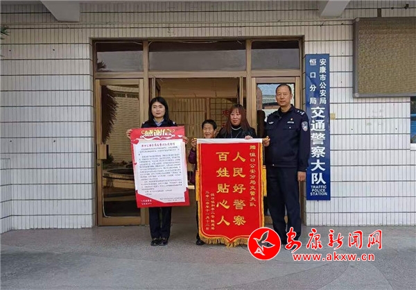 近日,汉滨区牛蹄镇的居民李某某,手持写有“百姓贴心人 人民好警察”字样的锦旗和感谢信来到恒口公安分局交警大队,对大队民警深夜帮忙找回走失母亲之举表示诚挚感谢。
