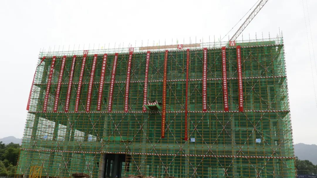 保税物流中心(B型)项目是无水港多式联运项目的子项目,总占地面积112亩,总建筑面积5.2万平方米,总投资3.4亿元,主要建设综合服务中心、停车待检区、通关卡口、海关查验场地、监管仓库、熏蒸处理库、保税仓库及跨境电商产业孵化基地等基础设施,进而建成具备现代企业管理体制及相应运营模式的现代综合物流园区。该项目于2023年1月13日开通,于6月19日完成主体施工,历时158天,顺利封顶,正在为12月项目如期交付奋力冲刺。