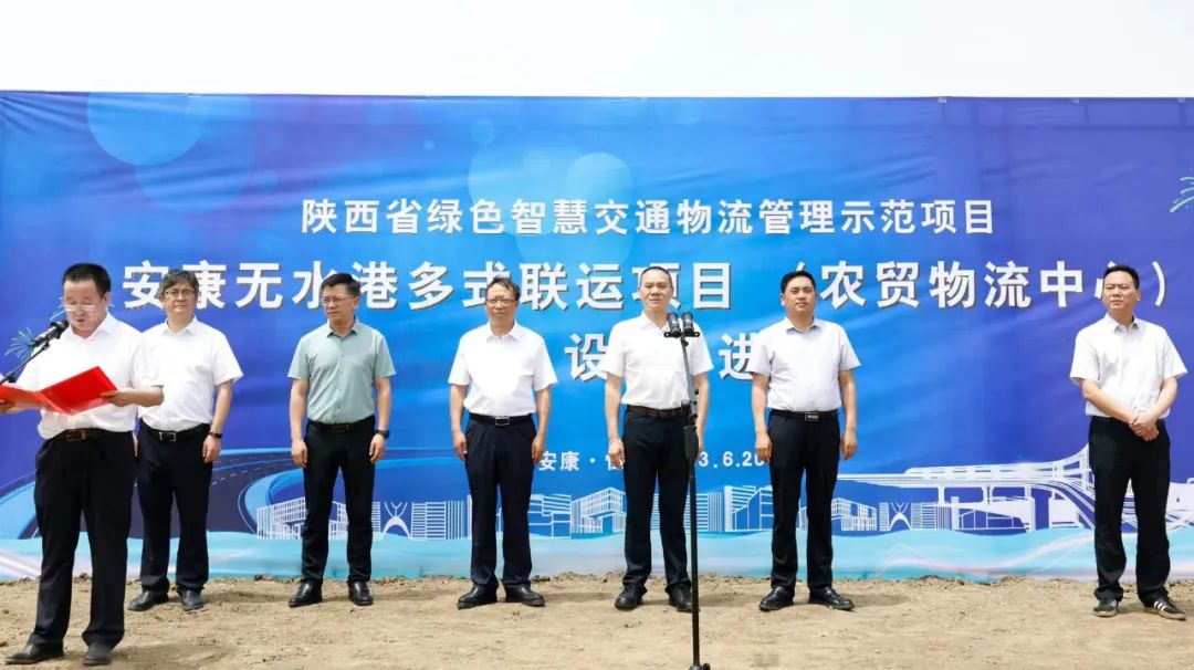 开工现场设在安康无水港多式联运国际贸易港项目所在地,该项目是安康无水港多式联运项目的重要组成部分,是构建秦巴现代物流港的关键一环,也是建设中欧班列(西安)集结中心安康分中心和西部陆海新通道集结分中心的核心内容。该项目位于恒口示范区工业产业园区,总投资约7.8亿元,总占地面积300亩,总建筑面积20万平方米,规划建设综合服务区、展销体验区、标准化厂区、冷链物流区等四大功能板块。