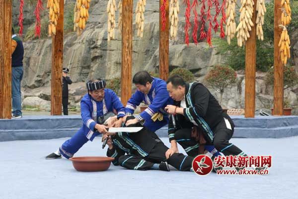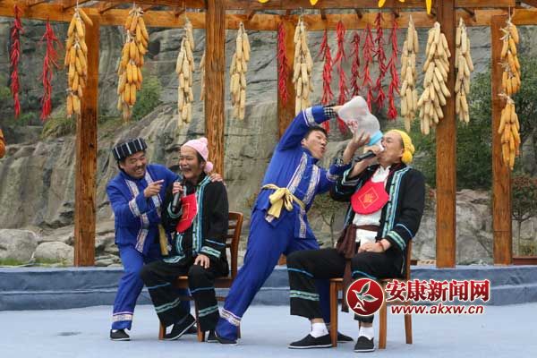 杀猪吃“泡汤肉”是岚皋不得不说的一个民俗。在舞台上,四位岚皋“老玩童”用以假乱真的口技、幽默夸张的动作,再现了这一民俗,赢得现场观众捧腹大笑,掌声不断。来自岚皋本土演员以一曲歌舞《神奇美丽南宫山》,将人们带入了人间仙境南宫山。