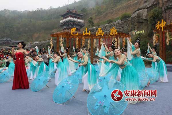 岚皋“巴人山歌”、“攀岩牛人”一一登场。舞台上信手拈来的情歌对唱、舞台后山上惊险的攀岩表演加上舞台前带有浓厚乡土气息地划拳饮酒声,巴山、巴人的“忠勇刚烈”精神内涵,被展现得淋漓尽致。