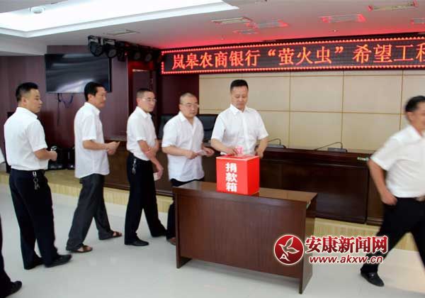 活动中,该行党委书记、董事长熊宗新同志宣读了倡议书,团县委少先队总辅导员员李思琦为岚皋农商银行“萤火虫”希望工程“信合筑梦”信贷助学服务志愿队授旗,农商银行机关及城区全体职工为贫困大学生进行了现场捐款,共筹集现金一万余元,;与此同时,在岚皋农商银行各大网点,也正在开展此项爱心捐助活动。