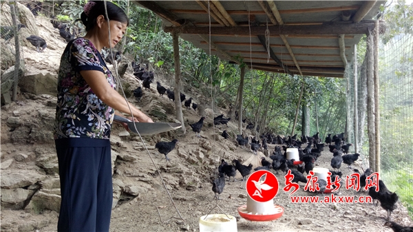 “山上一片绿,林下一片黑,心中一片喜悦啊。”查前翠看着山上的绿色和林下自己养殖的相互追逐的山地鸡感叹着。