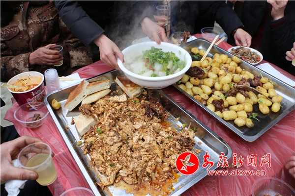 一场文化盛宴后,团圆饭成了浓浓年味里最温暖的守候。在烹饪师傅的精心烘烤下,带有地方特色的烤全羊美食新鲜出炉,金黄酥脆的羊肉散发出诱人的香味。三阳开泰全羊宴,把酒言欢叙丰年,村民们围聚在一起大快朵颐,畅饮美酒,拉家常话团圆,在熙熙攘攘的人群中,在阵阵欢声笑语里,年味在心头漫开。