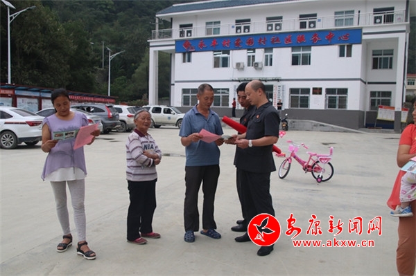 为更好地达到宣讲效果,宣讲团成员提前到周边移民搬迁安置点、村组院落发放扫黑除恶专项斗争、平安建设、“无讼新村”等宣传单共计300余份,吸引60余名群众参与到宣讲活动现场。