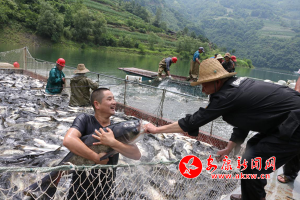 渔业丰收节活动举办地蔺河电站库区,采取“公司+合作社+移民户”方式成立7个合作社,合资300万元组建,其中公司占股40%、库区移民户占股60%,带动蔺河库区移民户1400余人,其中贫困户620人,残疾人80人,渔业产业脱贫户涉及15个村1375户,户均增收1200元。