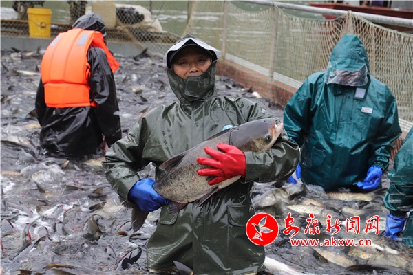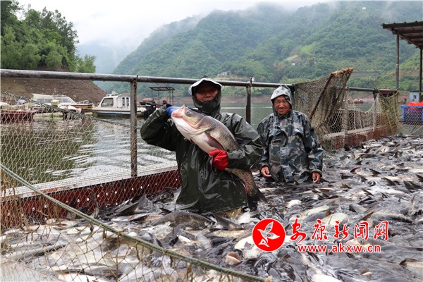 据了解,2018年年底,岚皋县秉承“以水养鱼、以鱼治水、绿色增收、循环发展”的宗旨,组建岚翠湖生态渔业有限公司,将涉及南湖流域沿线南宫山镇、蔺河镇、城关镇3镇7村,共计蔺河库区1500多移民户纳入由该公司牵头成立的7个生态养殖渔业合作社。截止2019年底,南宫湖累计增值放流花鲢、白鲢鱼苗30万斤,捕捞鲜鱼50余万斤,通过日常湖面管理、统一订单销售、零售以及年底分红等方式,当地渔民共计分红70万元,人均创收500元,其中贫困户620人。