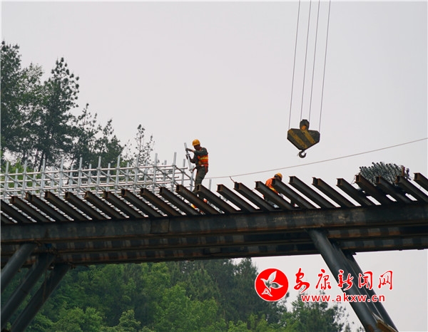 连日来,安岚高速公路建设现场一派繁忙景象,塔吊林立、机器轰鸣,工人们正在争分夺秒、抢抓工期,有的固定钢架,有的铺设桥面,有的精密焊接,工程建设正在迅速推进中。(尹正华 摄) spD安康新闻网