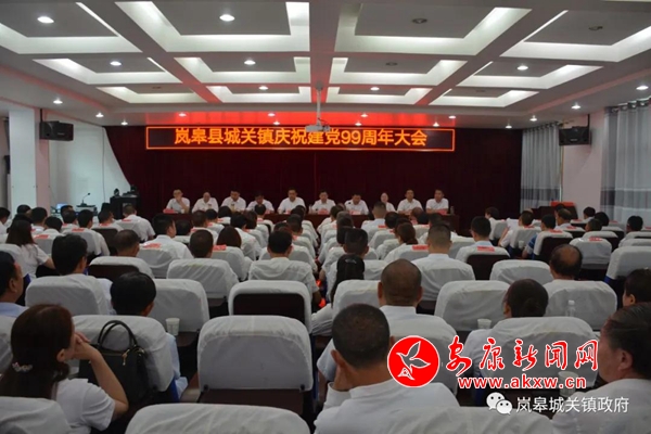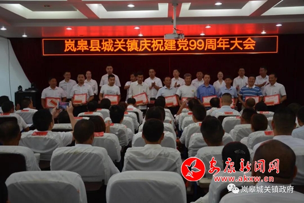 本网讯 (通讯员 唐定莹)为进一步增强党组织的凝聚力和战斗力,进一步发挥基层党组织和广大共产党员的先锋模范作用,凝聚强大合力,夺取脱贫攻坚大决战的最终胜利,7月1日,岚皋县城关镇举行庆祝建党99周年大会,镇机关全体党员、各村(社区)支书兼主任及受表彰人员共一百余人参加。