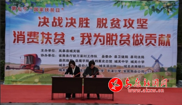 本网讯(通讯员 唐定莹)金秋送爽、硕果飘香。在第七个“全国扶贫日”来临之际,为凝聚“决战决胜·脱贫攻坚”收官之战力量,做好扶贫产品产销对接工作,发挥帮扶单位、帮扶干部助力消费扶贫的模范带头作用,10月16日,城关镇在岚皋县城碗厂坝广场开展“消费扶贫·我为脱贫做贡献”促销活动,该活动由城关镇主办、城关镇各脱贫攻坚帮扶单位协办,副县长杨乐,司法局局长、城关镇脱贫攻坚团副团长陈前安出席活动。