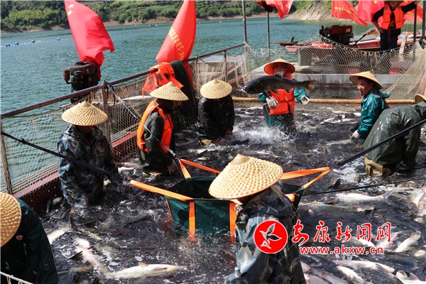 岚皋县农业农村局副局长杨桂刚介绍,2019年全县发展水产养殖面积18600亩,投放各类鱼种1800万尾,发展池塘健康养殖450亩,大水面养殖18150亩;发展市级良种繁育园1家(绿水)、国家级水产养殖示范场3家(清泉、绿水、岚翠湖),其中绿水渔业、清泉渔业养殖多鳞白甲鱼、西伯利亚杂交鲟鱼苗共计600万尾,全县水产品年产量达到5466吨,可比增长21.47%,年渔业经济总产值16718万元,可比增长28.6%,有力地促进了渔业资源恢复和水域生态建设,岚皋从网箱养鱼到清网转产生态养殖,生态优势转化为经济优势,环境资本转化为富民资本。