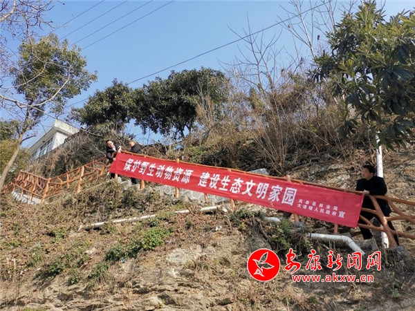 科学防控,加强室外宣传引导。通过签订《目标责任书》、悬挂横幅、发放宣传资料等形式大力宣传野生动植物保护相关法律法规,组织各镇村、护林站开展“清网、清套、清夹”行动,动员护林员加强日常巡护监测,倡导群众积极保护野生动植物资源,“禁食野味”,引导树立文明新风尚,共建人与自然和谐相处的美好家园。