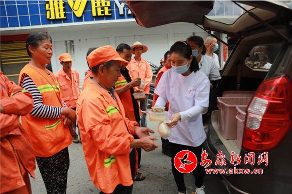 一份家常菜 ,情暖环卫工人心。连日来,县城的环卫工每天清晨8时就会聚集在邮电小区门口,小河口、肖家坝三个点每天向城内环卫工人免费定时定点提供52份早餐。笔者看到,一群身穿着环卫服的环卫工人正在品尝美食,他们脸上洋溢着喜悦的神情,伴着早餐那腾腾的热气,已成为岚皋这座小城中一道靓丽的风景。