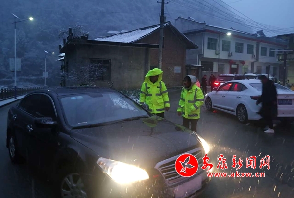 本网讯(通讯员 翁玲 温发勇)2月6日,正值春节假期返程高峰,岚皋辖区被一场春雪覆盖,岚皋县公安局交警大队以雪为令,将警力和警车安排到重点路口和路段,开展疏通保畅工作, 以路为家,与车辆为伴,顶风冒雪坚守,全力护航群众平安返程。