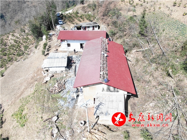 3月16日,无人机拍摄的改造中的岚皋县大道河镇白果坪村农村土坯房。