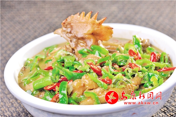 辣椒是农家自产的时蔬,鱼是岚河水孕育出的鲜鱼,皆是原生态无公害食品。一个鲜绿,一个鲜嫩,色香味美,佳偶天成。