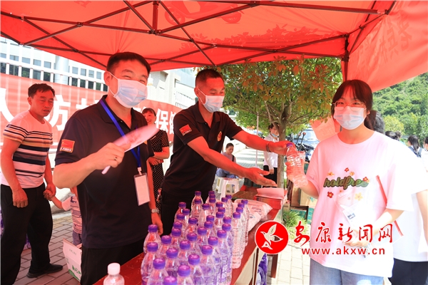 爱心送考,退伍老兵不逊色。早上6点左右,退役老兵志愿者们有条不紊地忙碌着,搬水、搭建临时志愿服务站,在岚皋中学校门口设置了爱心志愿服务点,为考生和家长服务。为了更好地服务考生,每一名退役军人对车辆进行了严格消毒和检查。退役老兵志愿服务爱心接送车队从县城出发,根据提前规划的路线沿途接送城区内的高考考生。