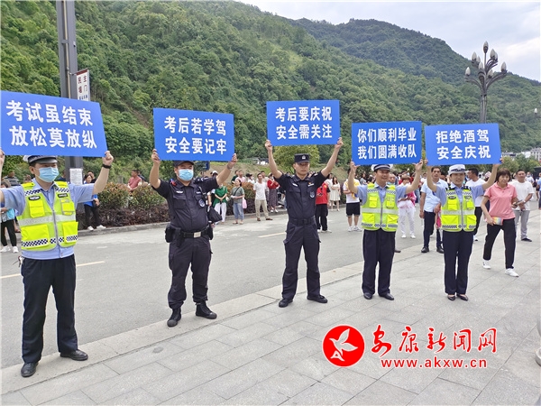 本网讯(通讯员 翁玲)6月8日,高考落下帷幕,高考后学生放松放纵引发的道路交通事故增多的隐患也随之而来,为引导考生及家长提高交通安全意识,源头预防交通事故发生,岚皋县公安局交警大队立足辖区实际,不断探索反诈宣传新手段、新方式,针对高考后考生及家长易发生的交通违法行为制作提示牌和宣传横幅,利用高考期间考生家长等待考生和考生考完试走出考点的有利时机,大力开展交通安全宣传活动,在显眼位置手举提示牌,让考生出考场的第一时间能看见交警的温馨提示,用交通安全提示迎接考生凯旋。