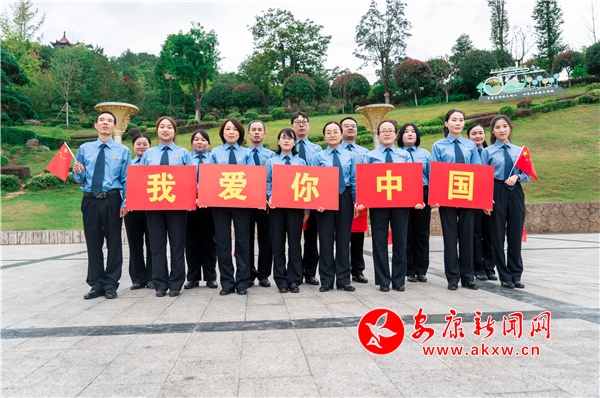 干警们着蓝色检察制服来到巴山珍稀植物园,以国旗为中心,组成一个大“五角星”,每个“角”上的干警心向国旗,庄重的同国旗合影,表达对祖国的祝福:“立检为公,执法为民,是我们的初心;坚守法治,坚守底线,是我们的使命。我们依法能动履职,为大局服务,为人民司法,努力让人民群众在每一个司法案件中感受到公平正义。祝祖国国泰民安,繁荣昌盛,我爱你中国。”