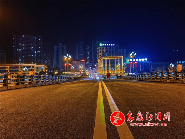 “白改黑”后的岚皋县城肖家坝大桥及夜景。陈延安/摄